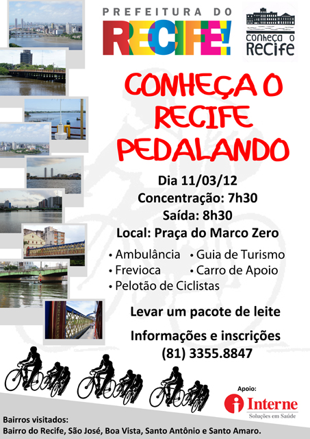 A atividade integra as ações de Sensibilização Turística da Prefeitura do Recife. O ‘Conheça o Recife Pedalando’ é aberto a todos os amantes do esporte. “Além de promover a prática da atividade física, os participantes vão poder conhecer mais da cidade”.