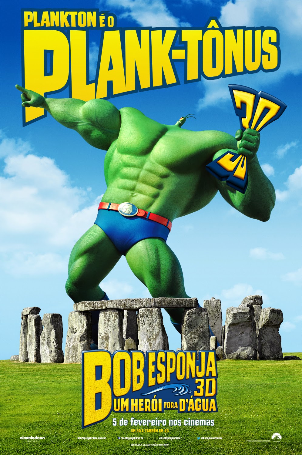 Os novos cartazes do filme “Bob Esponja: Um herói fora D´água”, da Paramount Pictures, mostram Bob Esponja e sua turma em versão super-herói. Dirigido por Paul Tibbitt, o ‘live action’ é baseado na série “Bob Esponja Calça Quadrada”, criada por Stephen Hillenburg. Antonio Banderas, Tom Kenny, Clancy Brown, Rodger Bumpass, Bill Fagerbakke, Carolyn Lawrence e Douglas Lawrence integram o elenco. No novo filme, que estreia no Brasil em 5 de fevereiro de 2015, o invertebrado mais famoso do fundo do mar vem à superfície para viver a maior aventura de sua vida.