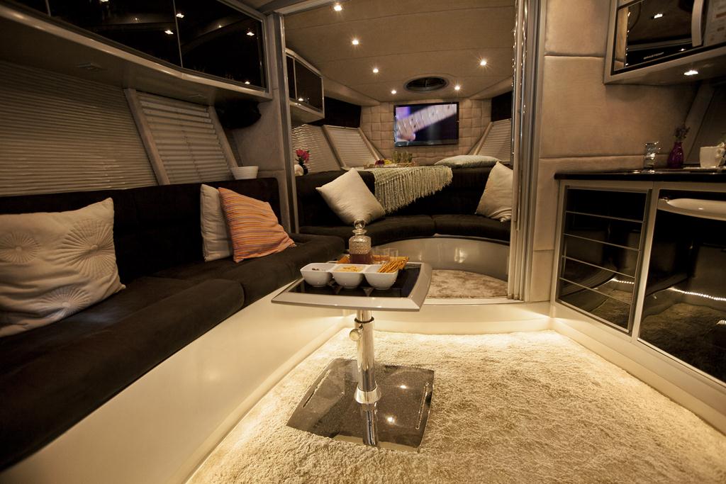 Nas áreas internas, o carpete é uma boa opção. No caso das áreas úmidas, como popa e cozinha, o ideal é escolher a Teca Natural ou Sintética.
