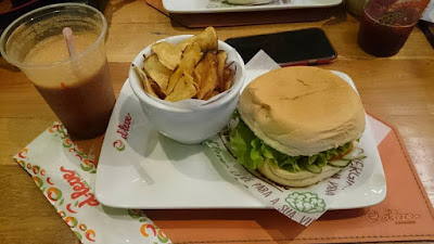 Partimos então para a segunda etapa, e pedimos o Texas Burger com os chips de batata doce e um dos sucos especiais – difícil escolher entre tantas opções e misturas. O Burger de Alcatra tem o toque especial do bacon, o que faltava era só uma maionese especial pra valorizar o HB. Os chips de batata são fantásticos, crocantes e viciantes, super saborosos. Você come vários, um atrás do outro sem perceber a quantidade que já devorou. E o suco de Laranja Nutricional é tipo top. Delicioso. Uma mistura de laranja, acerola e xarope de guaraná.